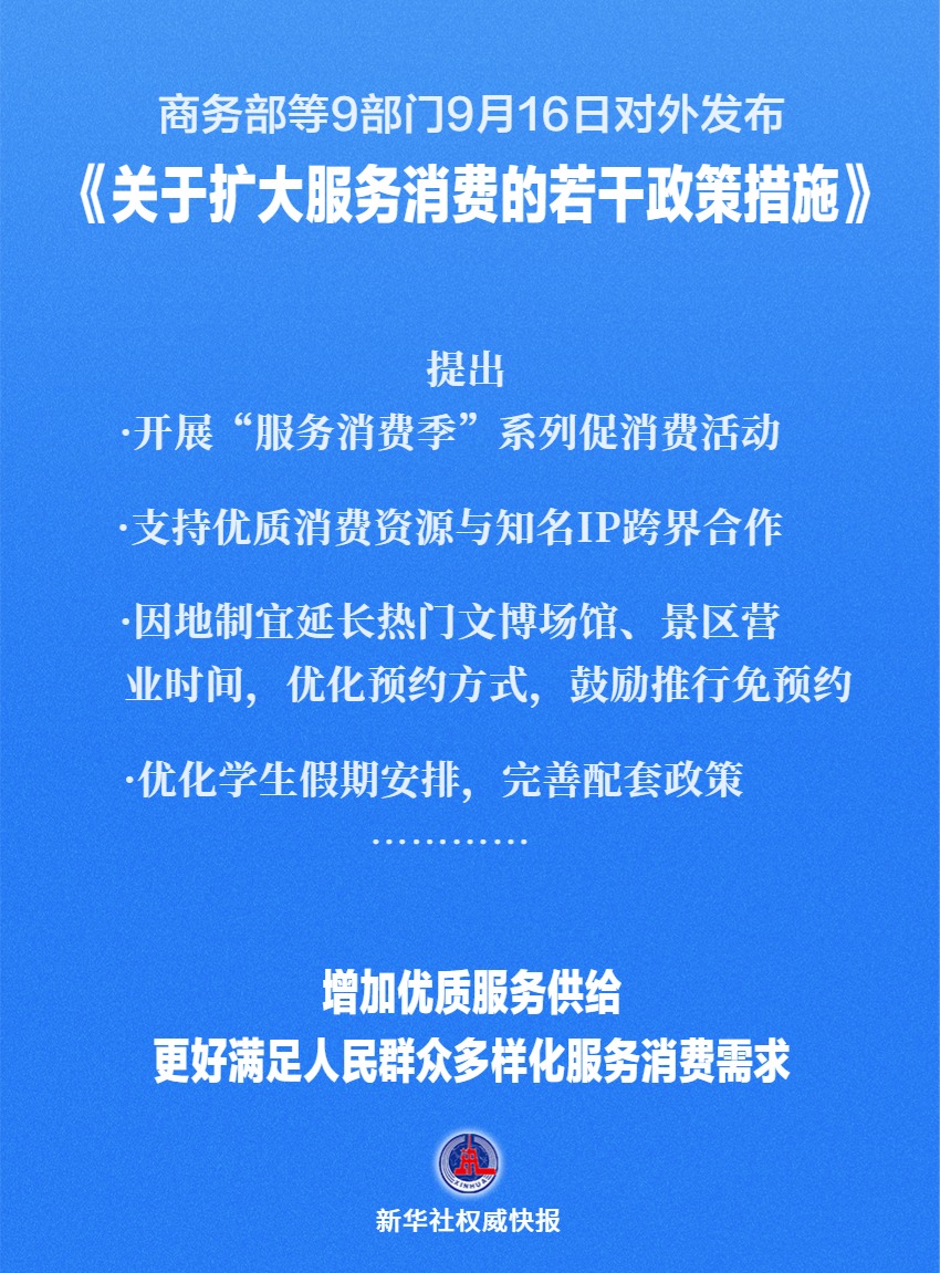 商務部等9部門16日對外發(fā)布《關于擴大服務消費的若干政策措施》,提出五方面19條舉措進一步擴大服務消費。