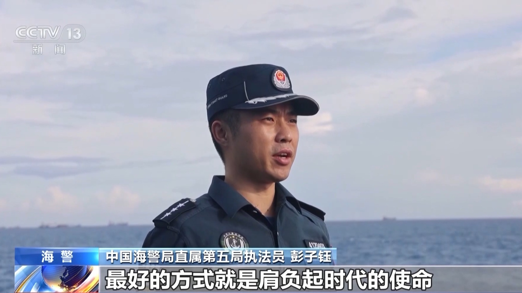 中國海警局直屬第五局執(zhí)法員 彭子鈺:紀(jì)念九一八,最好的方式就是肩負(fù)起時(shí)代的使命。我們堅(jiān)守在海上維權(quán)執(zhí)法第一線,就是要用實(shí)際行動(dòng)告慰先烈:祖國的萬里海疆,有我們?cè)?,?qǐng)人民放心!