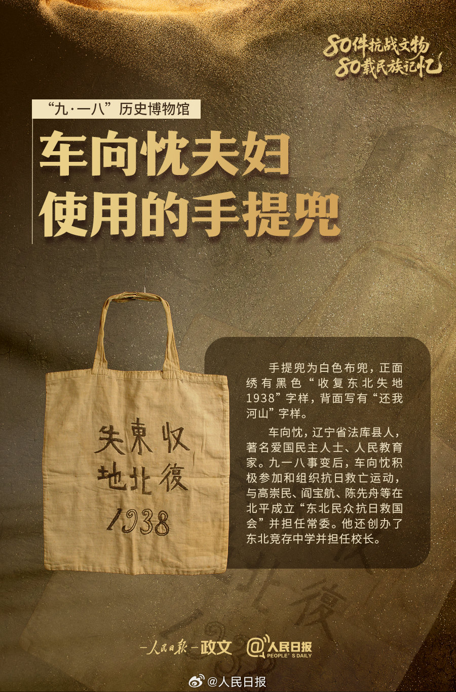 抗日志士在獄中寫下的遺書、繡有“收復(fù)東北失地 1938”“還我河山”字樣的手提兜、東北抗聯(lián)被服廠縫紉機(jī)……九一八事變爆發(fā)94周年,“80件抗戰(zhàn)文物80載民族記憶”系列報(bào)道第七期,見證白山黑水間的不屈抗?fàn)帯懹洑v史,守護(hù)永不褪色的抗戰(zhàn)記憶!