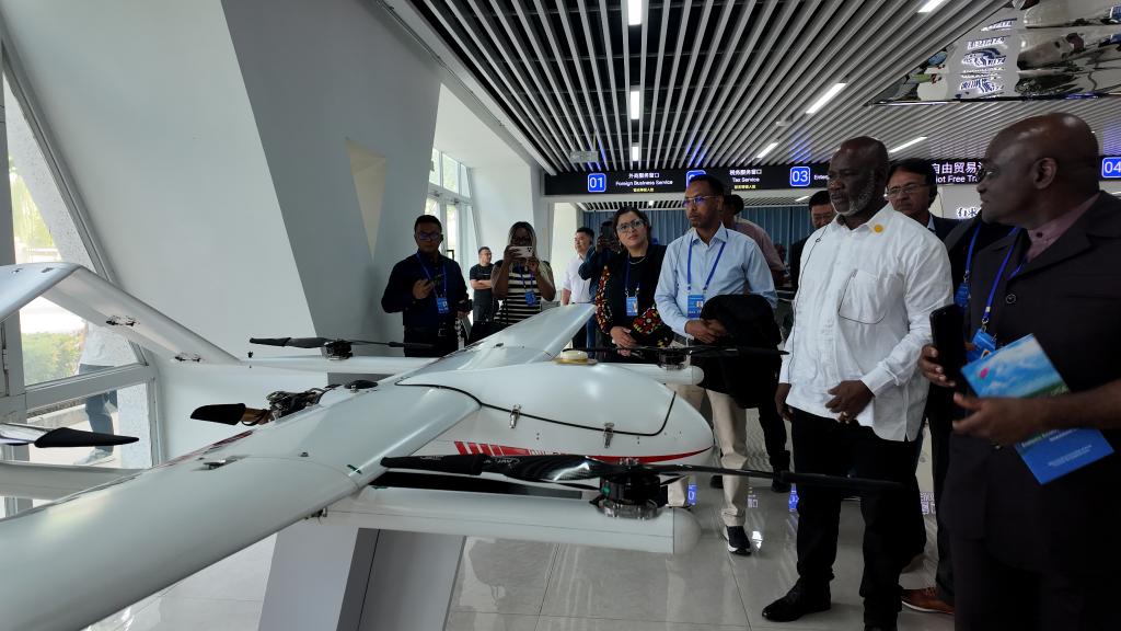 9月13日,外國議員在中國(新疆)自由貿(mào)易試驗區(qū)喀什片區(qū)展廳低空經(jīng)濟展區(qū)參觀。 新華社記者 王澤宇 攝