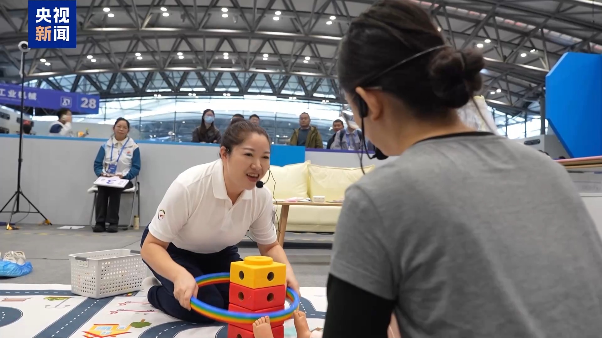 賽場上,一個(gè)個(gè)格子間按照真實(shí)居家場景布置,選手們按照流程,完成從上門拜訪、嬰兒互動(dòng)、游戲設(shè)計(jì)、家長交流等系列服務(wù)工作。記者注意到,這次比賽創(chuàng)新引入會(huì)哭鬧的智能化模擬嬰兒,選手抱姿不對、饑餓都會(huì)有數(shù)據(jù)反饋,考驗(yàn)選手的回應(yīng)性照顧能力,同時(shí)邀請了一些嬰幼兒家長進(jìn)行配合互動(dòng)。