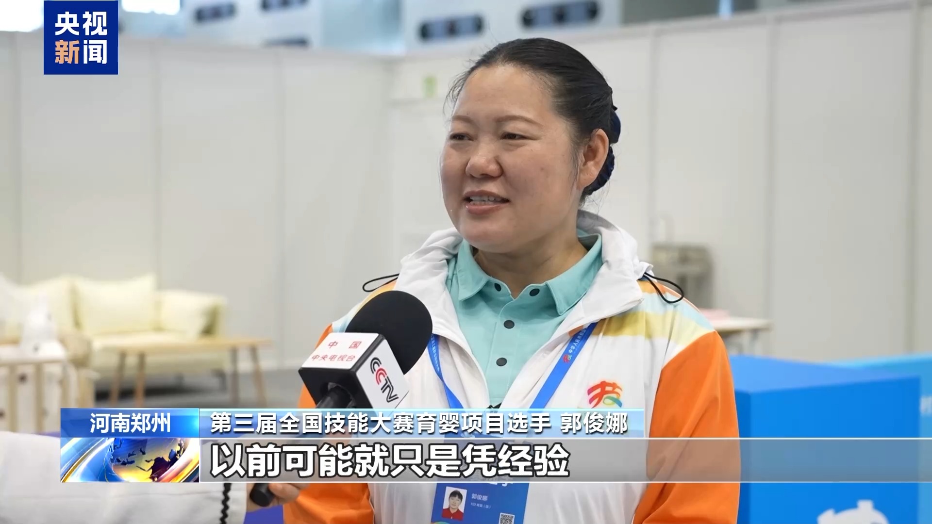 第三屆全國技能大賽育嬰項(xiàng)目選手 郭俊娜:比如給寶寶喂奶,以前可能只是憑經(jīng)驗(yàn),現(xiàn)在就要求抱孩子45度斜角。把流程標(biāo)準(zhǔn)化了,能夠更好地服務(wù)嬰幼兒以及家庭。