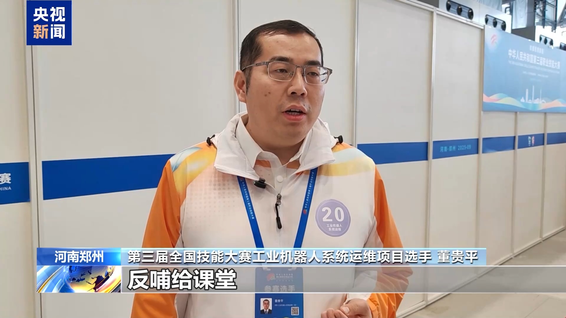 第三屆全國技能大賽工業(yè)機(jī)器人系統(tǒng)運(yùn)維項(xiàng)目選手 董貴平:能夠把學(xué)到的一些實(shí)操技能以及理論知識,反哺給課堂,提升學(xué)生的理論儲(chǔ)備以及實(shí)操的技能。