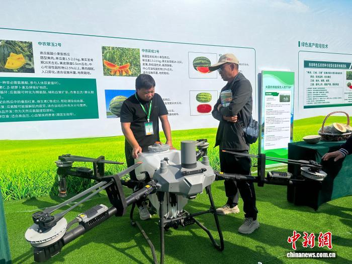 9月23日,新疆慶?!爸袊r(nóng)民豐收節(jié)”活動在昌吉州舉行,圖為現(xiàn)場展出的農(nóng)業(yè)植保無人機。 左丹丹 攝