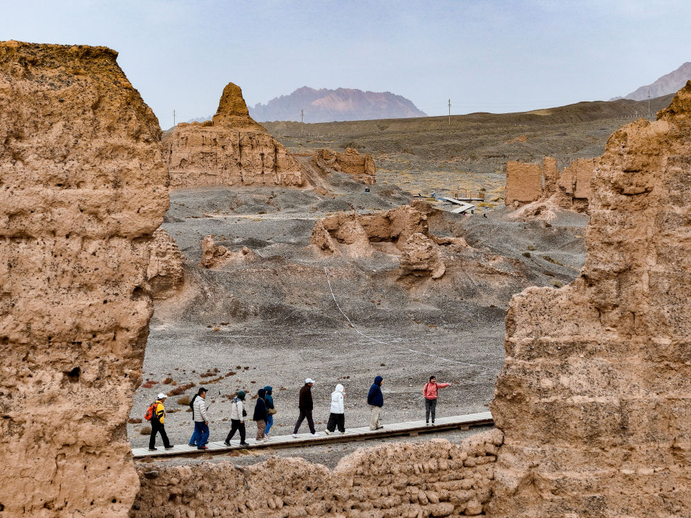 “克孜爾尕哈”意為“紅色哨卡”。夕陽(yáng)下,這座漢代軍事設(shè)施的夯土墻體被映照得棱角分明,泛著淡淡的金紅色?!罢驹谶@里,仿佛看到了當(dāng)年的烽火傳訊。”一名游客感慨地說(shuō)。