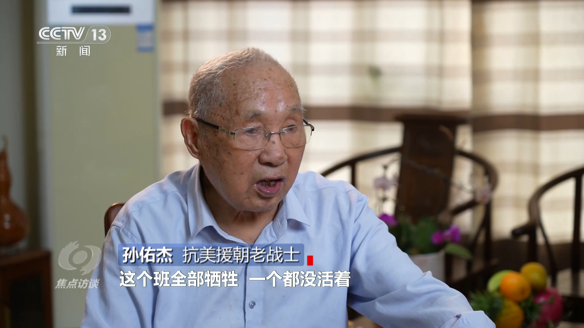 抗美援朝老戰(zhàn)士孫佑杰:“一班班長(zhǎng)領(lǐng)著大家討論吃苦的價(jià)值,班長(zhǎng)說我們今天在這里吃苦,流血犧牲是有價(jià)值的,等我們打敗了美帝國(guó)主義的侵略以后,我們的祖國(guó)強(qiáng)大了,人們的生活會(huì)更加美好,到那時(shí)候就會(huì)樓上樓下電燈電話,想吃面包就吃面包,想喝牛奶就喝牛奶,天天像過年一樣?!?/p>