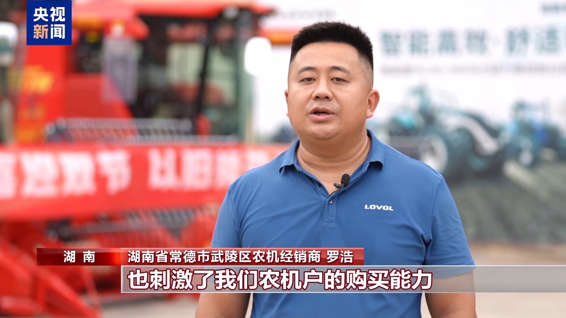 湖南省常德市武陵區(qū)農(nóng)機經(jīng)銷商 羅浩:以舊換新政策有效地促進了我們農(nóng)機的流通,也刺激了農(nóng)機戶的購買能力。相比于往年,銷售提升了30%。