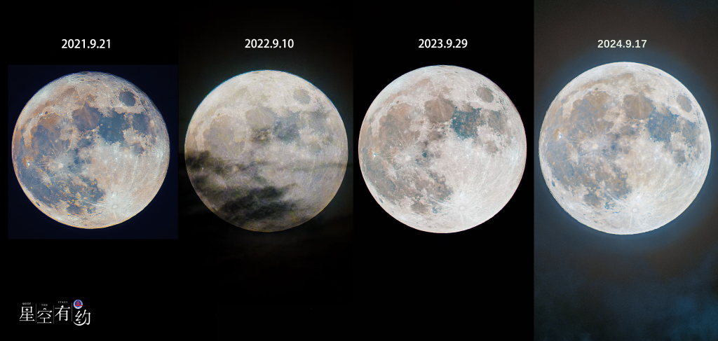 連續(xù)四年在廣西南寧市拍攝的中秋月特寫(xiě)(拼版)。(王晉 攝)