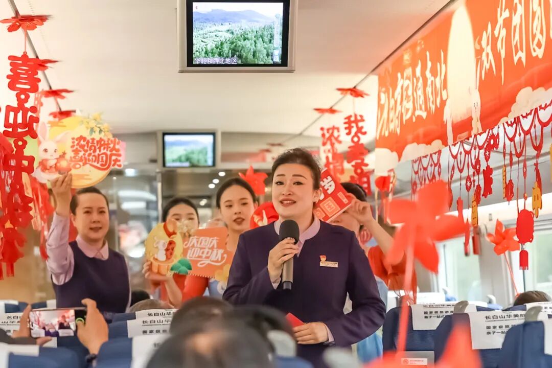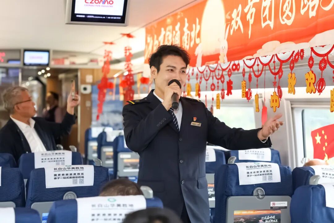 沈佳高鐵沈白段開通運(yùn)營后,迎來第一個(gè)國慶中秋假期。長春客運(yùn)段在長春至青島北的G3565次列車上舉辦“‘我的鐵路風(fēng)景’——沈白高鐵通南北 雙節(jié)團(tuán)圓路更捷”列車聯(lián)歡活動(dòng)。