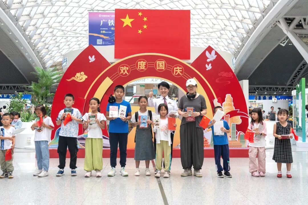 10月1日,廣州南站在三層候車廳組織開展歡度國慶暨“文明出行·書香廣南”快閃活動。廣州南站職工初心藝術(shù)團(tuán)成員帶來快閃表演《坐著高鐵看中國》,并與旅客共唱《我和我的祖國》,共同祝福祖國繁榮昌盛!