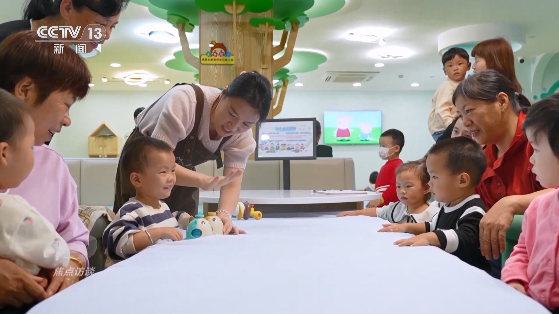 在一家托育中心的體驗日,有不少家長帶著寶寶來體驗,最小的娃還不滿一歲。保育員陪著寶寶們玩得熱熱鬧鬧。我們在這兒碰到了一位三胎媽媽:兩個哥哥都上幼兒園了,小兒子才八個月大,這個雙職工家庭忙得腳不沾地。