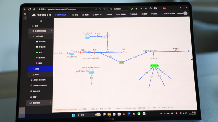 在河海大學(xué)水工程調(diào)度團(tuán)隊鐘平安教授的帶領(lǐng)下,朱非林參與了面向三峽工程這一國之重器的重大科研攻關(guān)。團(tuán)隊主要在"快"和"準(zhǔn)"兩個字上下功夫。過去,為一個流域搭建防汛調(diào)度模型和系統(tǒng),需要工程師花費(fèi)幾天甚至幾個月手動創(chuàng)建,如同手工編織一張巨大的網(wǎng)。朱非林團(tuán)隊開發(fā)了一套智能在線建模系統(tǒng),像搭"數(shù)字樂高"一樣,通過簡單的鼠標(biāo)拖拉拽操作,就能在幾分鐘內(nèi)建立起全國任意流域或區(qū)域的調(diào)度系統(tǒng)和模型,極大提升了防汛決策的響應(yīng)速度,為洪水調(diào)度贏得了寶貴的黃金時間。