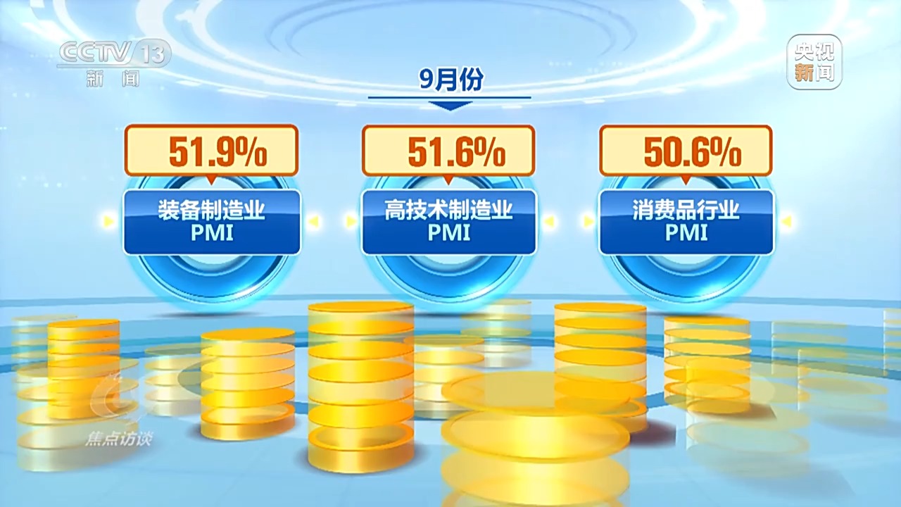 工業(yè)企業(yè)利潤的明顯改善釋放的是市場需求在增加、價(jià)格在回升等積極信號。類似的積極信號,我們在制造業(yè)采購經(jīng)理指數(shù)(PMI)中也能看到。9月份,裝備制造業(yè)、高技術(shù)制造業(yè)和消費(fèi)品行業(yè)PMI分別為51.9%、51.6%和50.6%,均位于擴(kuò)張區(qū)間。生產(chǎn)經(jīng)營活動預(yù)期指數(shù)為54.1%,連續(xù)三個(gè)月回升。