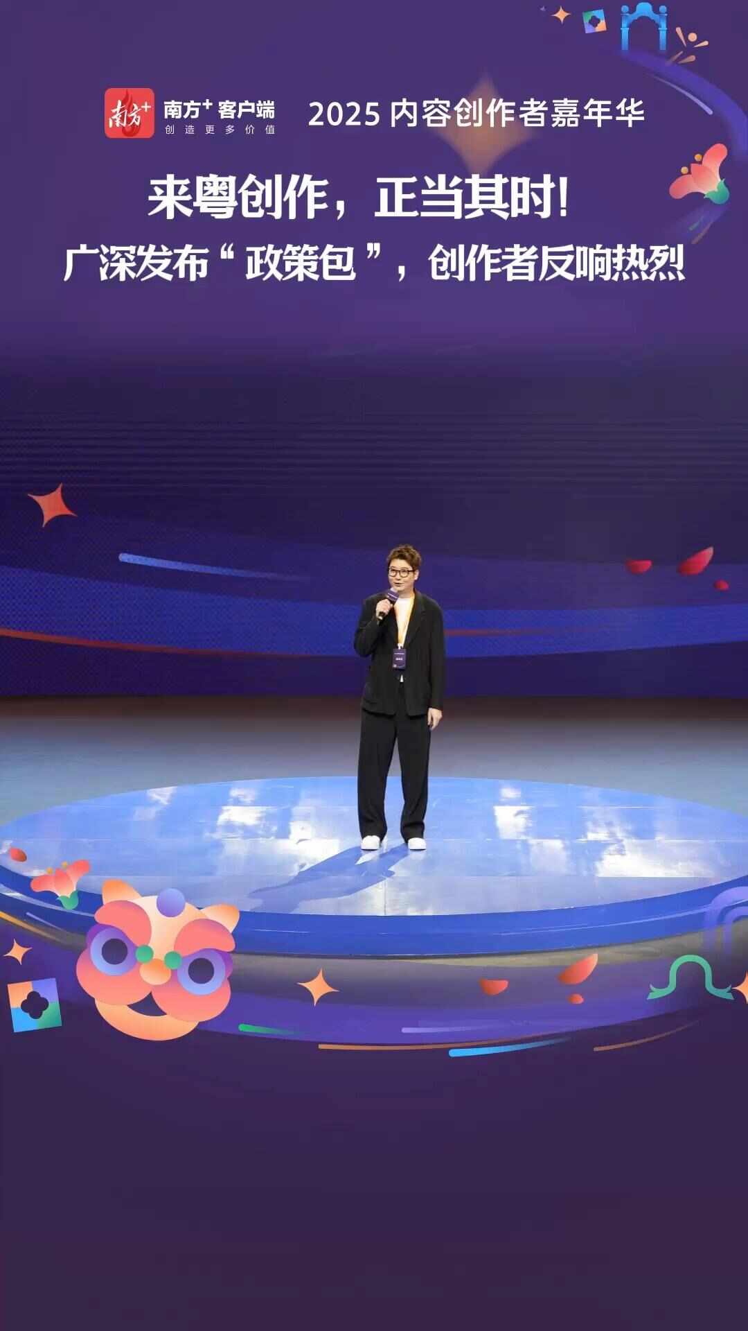 本次嘉年華匯聚了600多名全球優(yōu)質(zhì)創(chuàng)作者、MCN機(jī)構(gòu)及主流媒體代表。在啟動儀式上,央視新聞、“意公子”“白菜GG”“Sir電影”“粵知一二”等優(yōu)質(zhì)創(chuàng)作者代表以“開放麥”的形式分享創(chuàng)作故事,從內(nèi)容創(chuàng)作的視角,幽默、鮮活地分享各自不同領(lǐng)域的洞察與破圈經(jīng)驗。