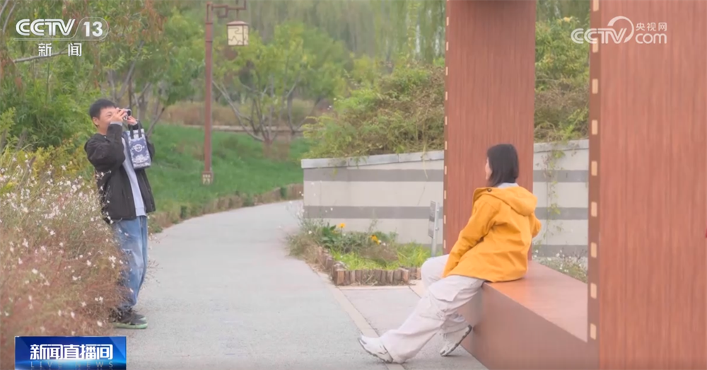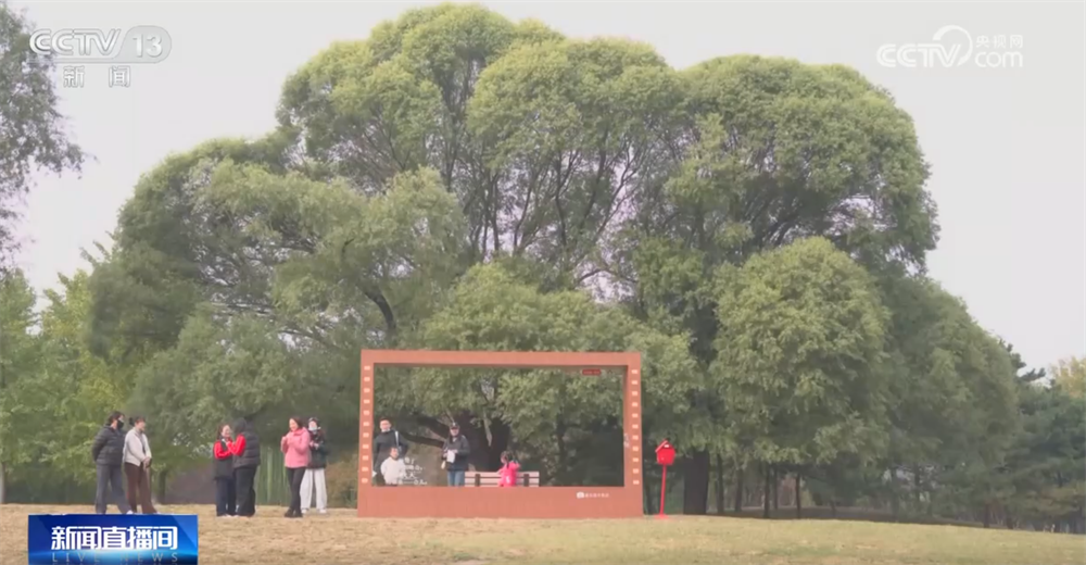 “秋日長(zhǎng)椅三分鐘計(jì)劃”創(chuàng)新推出了三大電影畫框場(chǎng)景。朝陽(yáng)公園的饅頭柳以其獨(dú)特的“西蘭花”樹(shù)形,成為市民“出片兒”的熱門機(jī)位。在地壇公園,畫框?qū)⒐虐嘏c銀杏林定格,皇家園林的秋日氣韻引來(lái)游客駐足。