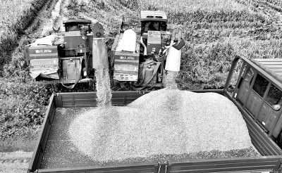 農(nóng)機在四川農(nóng)業(yè)大學科技示范點卸裝收獲的香稻。新華社發(fā)