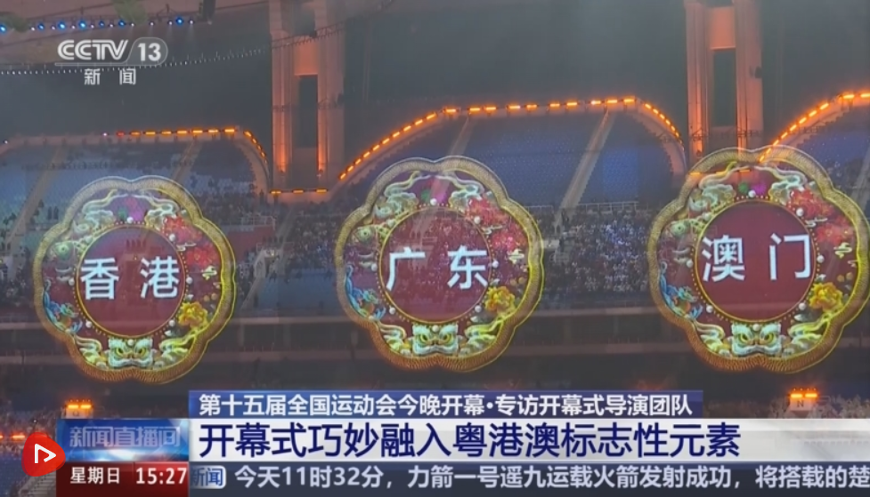 十五運會開幕式11月9日晚8時在廣東奧體中心舉行。開幕式導演團隊在接受總臺央視記者專訪時表示,開幕式在展現粵港澳三地同根同源、互聯互通的同時,電影感的加入也將讓開幕式與眾不同。