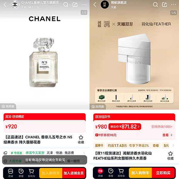 個別國貨香水價格高于國際品牌(圖片來源:天貓)