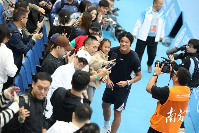 11月3日,大量球迷來到全運(yùn)會賽場,與球員張之臻在賽后熱情互動。許舒智 攝