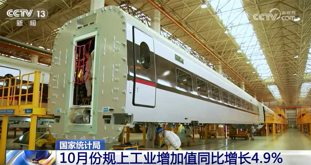 工業(yè)生產(chǎn)總體穩(wěn)定,10月份規(guī)模以上工業(yè)增加值同比增長(zhǎng)4.9%,繼續(xù)保持總體穩(wěn)定增長(zhǎng)。其中,裝備制造業(yè)增加值增長(zhǎng)8%,明顯快于規(guī)模以上工業(yè)增長(zhǎng),對(duì)規(guī)模以上工業(yè)增長(zhǎng)支撐作用明顯。