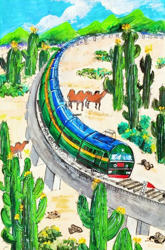回家的路上,我翻著爸爸收藏的老照片:黑白照片里是詹天佑設(shè)計的京張鐵路;彩色照片中,嶄新的京張高鐵穿越居庸關(guān)隧道,智能列車自動駕駛,外國人都豎起大拇指。爺爺常說“鐵路是國家的脊梁”,如今,這脊梁挺得筆直,載著14億人的夢想飛馳。