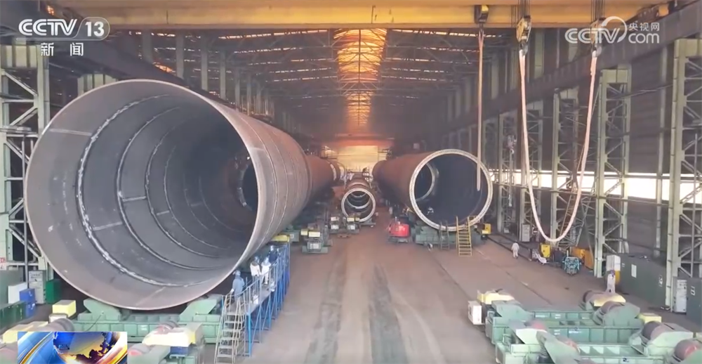 在山東蓬萊這家海洋重工企業(yè)的生產(chǎn)基地,記者看到,巨型風電樁基從廠區(qū)貨場直接運抵碼頭裝船出口。這種無縫銜接的“碼頭直裝”新模式,讓產(chǎn)品不再受限于公路運輸瓶頸。
