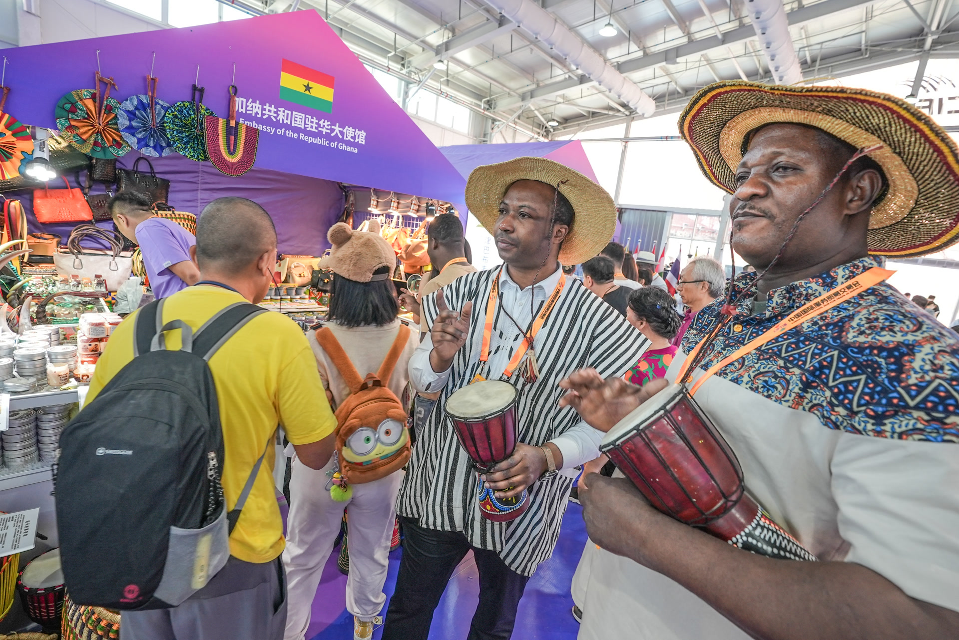 在服貿會首鋼園展區(qū),外籍展商在現場表演,展示本國文化。武亦彬攝