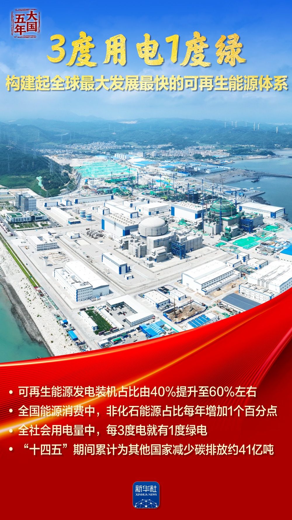 全社會用電量中,每3度電就有1度綠電;風電光伏裝機歷史性超過火電,新能源發(fā)電增量占全國新增發(fā)電量近一半;全國統(tǒng)一電力市場加快構(gòu)建,塞北的風點亮灣區(qū)的燈……“十四五”期間,我國能源建設逐“綠”向“新”,筑牢能源安全的堅實底座,繪就民生幸福的溫暖底色,夯實“雙碳”目標的實現(xiàn)基礎(chǔ)。