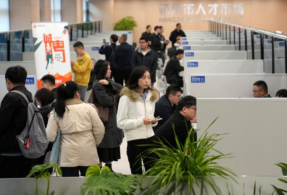 11月12日,“陽光就業(yè),職為你來” 2025年杭州市總工會(huì)冬季專場招聘會(huì)現(xiàn)場。新華社記者 韓傳號(hào) 攝