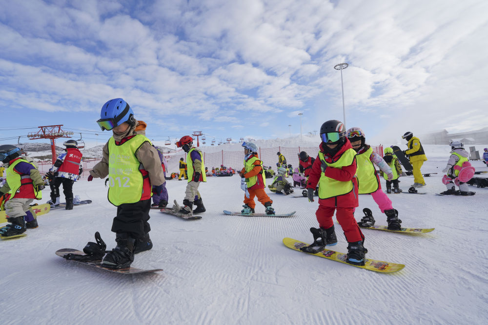 12月1日,學生在阿勒泰將軍山國際滑雪度假區(qū)練習單板滑雪。新華社記者 阿曼 攝
