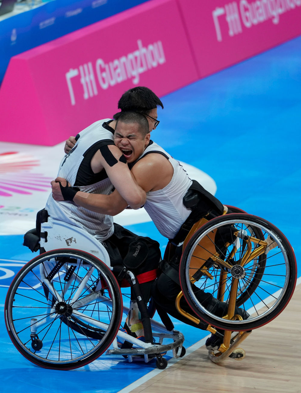 12月8日,在廣州舉行的全國第十二屆殘疾人運動會暨第九屆特殊奧林匹克運動會輪椅籃球項目男子三人籃球決賽中,遼寧隊13:9戰(zhàn)勝北京隊。新華社記者 吳魯 攝