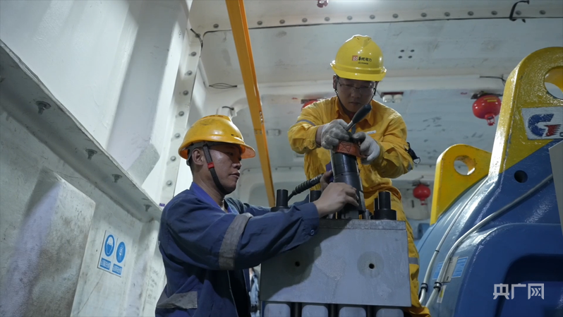 李亞雄與同伴對風(fēng)機內(nèi)部部件進行巡檢維護(央廣網(wǎng)發(fā) 受訪者供圖)