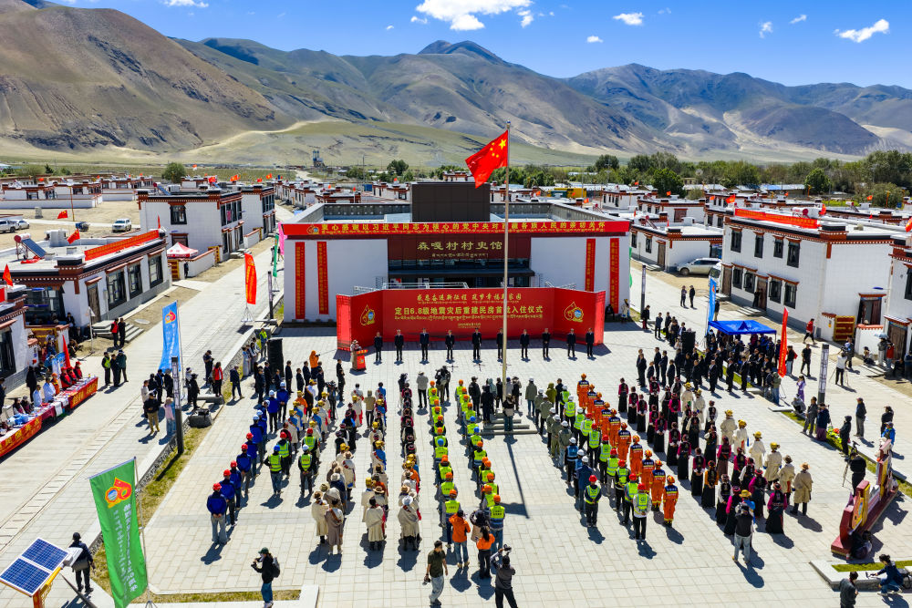 2025年8月15日,定日縣長(zhǎng)所鄉(xiāng)森嘎村舉行“定日6.8級(jí)地震災(zāi)后恢復(fù)重建民房首批入住儀式”(無(wú)人機(jī)照片)。