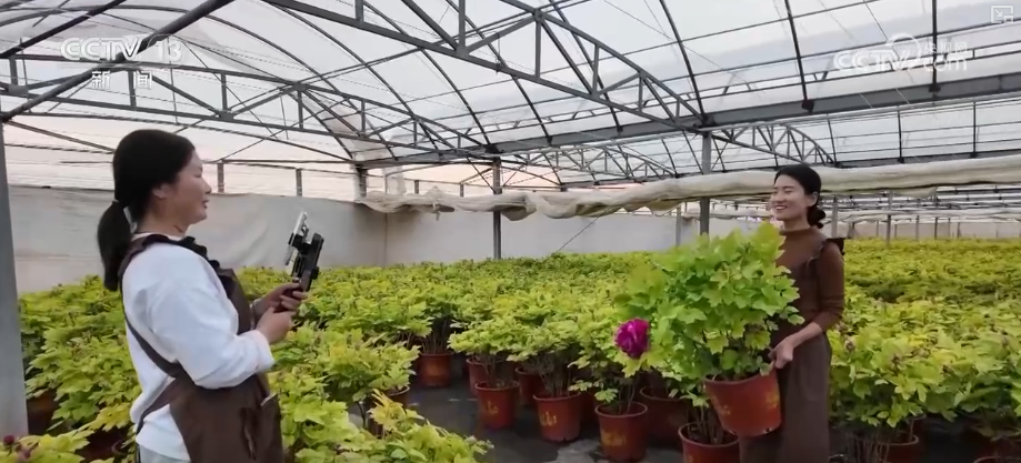 除了線下銷售渠道,工作人員也在大棚里架起手機,通過網絡直播把牡丹賣到全國各地。