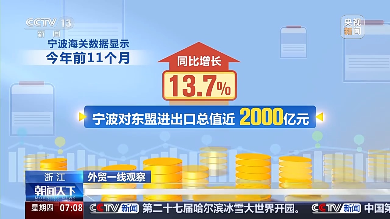 寧波海關(guān)數(shù)據(jù)顯示,今年前11個(gè)月,寧波對(duì)東盟進(jìn)出口總值近2000億元,同比增長(zhǎng)13.7%。其中,機(jī)電產(chǎn)品作為寧波對(duì)東盟出口商品中的主力軍,前11個(gè)月出口了近600億元,增長(zhǎng)22.9%。