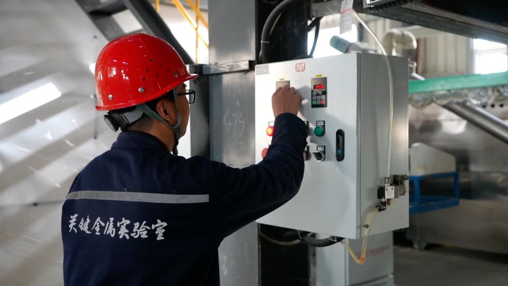 在三門峽中原關(guān)鍵金屬實(shí)驗(yàn)室無(wú)氨氮鉬冶金中試項(xiàng)目現(xiàn)場(chǎng),實(shí)驗(yàn)人員正在進(jìn)行數(shù)據(jù)采集等工作。