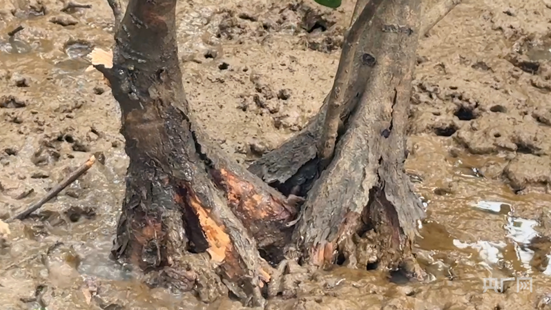 耐寒的紅樹品種根系已逐步適應(yīng)玉環(huán)沿海水土(央廣網(wǎng)記者 李曉曉 攝)
