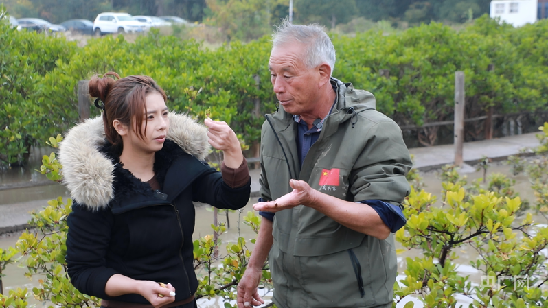 吳昌根女兒今年加入保護(hù)紅樹林隊(duì)伍,圖為吳昌根在給女兒講解紅樹林育苗知識(shí)(央廣網(wǎng)發(fā) 羅凱文 攝)