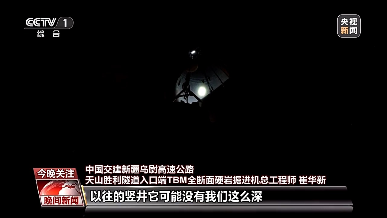 中國交建新疆烏尉高速公路天山勝利隧道入口端TBM全斷面硬巖掘進(jìn)機(jī)總工程師 崔華新:現(xiàn)在我們所處的位置,是我們豎向掘進(jìn)機(jī)開挖完成之后,我們豎井的最后一道工序也就是二襯。隨著我們的施工進(jìn)度不斷提高,我們經(jīng)歷黑暗的時間也是越來越短的。
