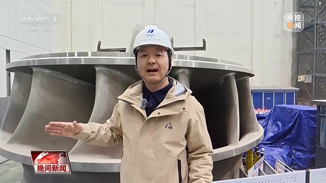 水電站究竟是如何發(fā)電的?記者身后就是發(fā)電機(jī)組最關(guān)鍵部件之一的轉(zhuǎn)輪,澎湃的高壓水流從190米的高處沖擊下來,推動(dòng)轉(zhuǎn)輪高速旋轉(zhuǎn)。它1分鐘通過的水量近2萬立方米,能夠灌滿大概8個(gè)標(biāo)準(zhǔn)游泳池,可滿足超過4萬個(gè)三口之家一年的用電需求。