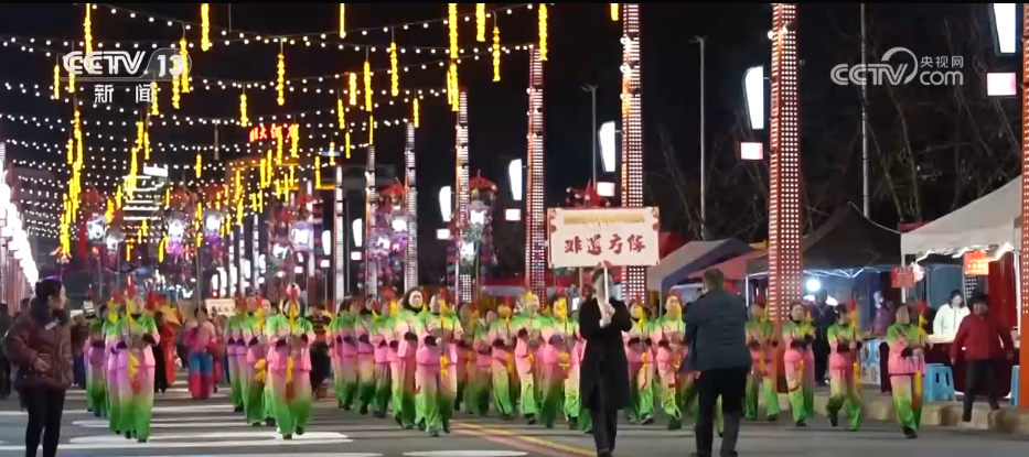 向舞臺(tái)走去的是非遺方陣從前到后分別是錢桿舞、花燈戲,以及高矮人舞這三個(gè)節(jié)目都是余慶當(dāng)?shù)氐馁F州省級非遺。每當(dāng)逢年過節(jié)的時(shí)候,當(dāng)?shù)厝罕姸紩?huì)打扮一番來到街頭,向周圍的觀眾們送去節(jié)日的祝福。