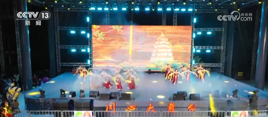 賞完了冰雕霧凇,大家可能已經(jīng)聽到了現(xiàn)場熱鬧的音樂聲,此刻,迎接新年的預(yù)熱演出已經(jīng)開場,演員們身著藏族服飾跳起歡快的鍋莊舞,舞蹈和歌聲中滿是對新年的喜悅與期待。