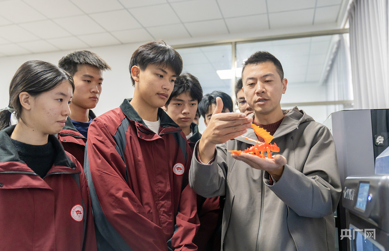 學(xué)生們?cè)诶蠋煹闹笇?dǎo)下進(jìn)行3D打印實(shí)訓(xùn)