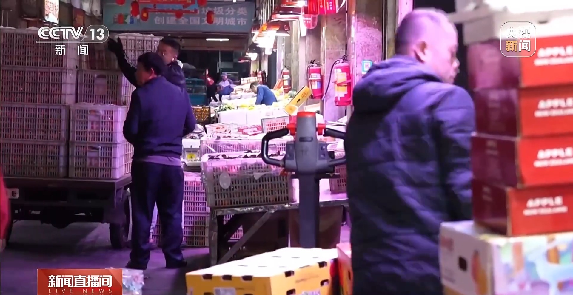 總臺央視記者 高媛:凌晨4點,很多人還在家里睡覺,但是在深圳的“菜籃子”海吉星市場,一天中最忙碌的時段之一就已經(jīng)開始了。很多人新年的第一口鮮就將從這里出發(fā)。