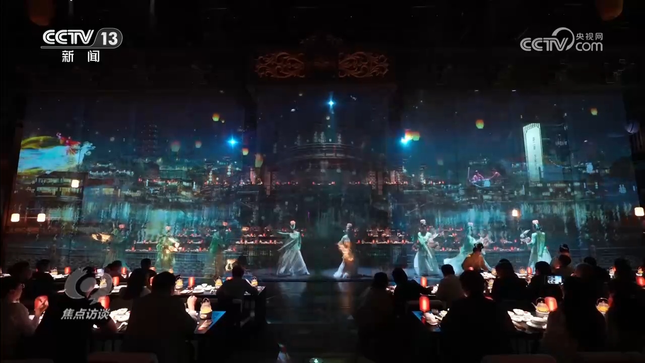 《清明上河·宋宴》是全國(guó)首個(gè)宋文化沉浸式餐秀,通過(guò)“宴席+演藝+科技”的創(chuàng)新形式,讓游客化身北宋汴京雅士,跟著宋代名人的腳步風(fēng)雅入宴。