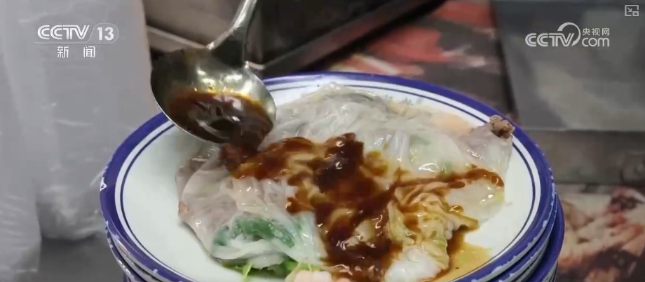 腸粉店老板陳軒豪介紹,米漿里水的比例也很關(guān)鍵,他們會根據(jù)當(dāng)天的天氣進(jìn)行調(diào)整,比如天氣炎熱潮濕的時候,就需要少放一點水,不然蒸出來口感就會比較軟爛。夏天還會放一些冰,防止米漿變質(zhì)。