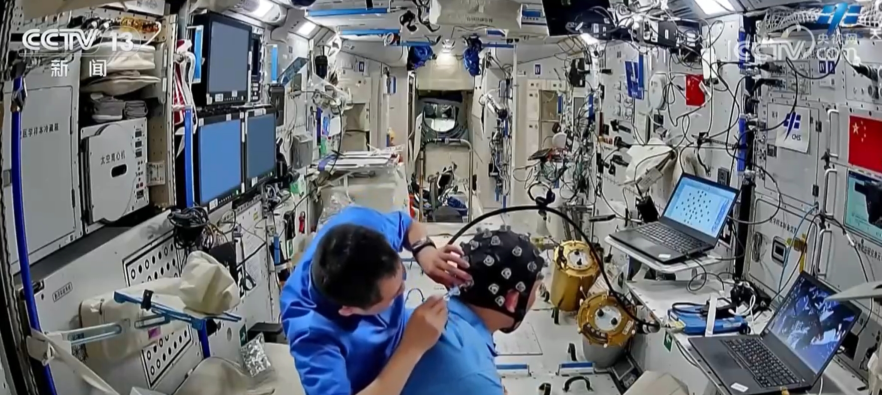 在軌腦電測試研究相關項目按計劃開展,乘組利用腦電設備完成了上下視野研究、執(zhí)行功能訓練、探索利用研究等多個項目的實驗測試工作;使用近紅外腦功能成像設備開展空間腦網絡時變特性實驗,通過采集相關數(shù)據,開展長期空間飛行環(huán)境對航天員腦功能網絡影響及大腦對外部環(huán)境變化進行了自發(fā)調整與適應機制研究。