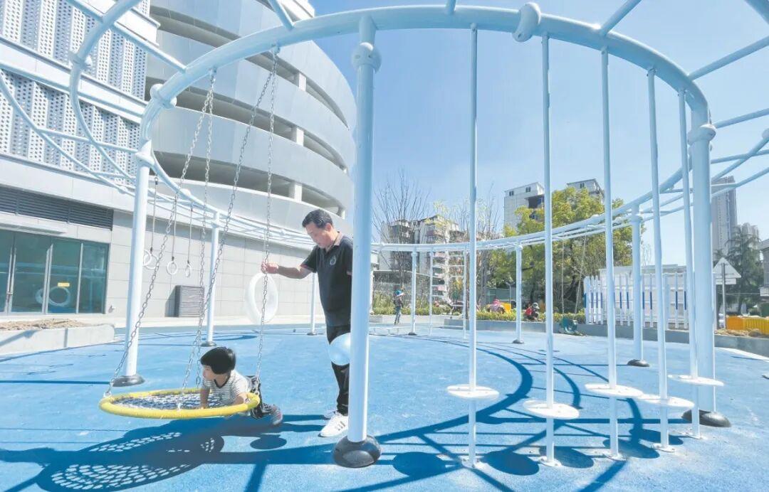漢陽(yáng)區(qū)知音東苑小區(qū)停車(chē)樓一側(cè)建有兒童娛樂(lè)區(qū),成為小朋友的快樂(lè)天地。記者冷靖華 攝