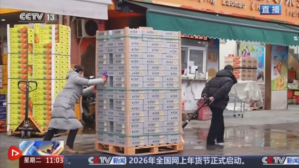 記者來到南京農(nóng)副產(chǎn)品物流配送中心,這里又被稱為眾彩市場。市場上,大型貨柜車進進出出,非常繁忙,裝載著來自全國乃至全球的農(nóng)產(chǎn)品。這里既是南京的“菜籃子”,也是服務(wù)南京都市圈約2000萬人口的重要的保供樞紐,在1月19日,僅水果一個品類,這里的到貨量就超過了2200噸。
