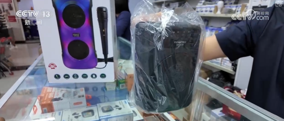 在南非首都開普敦的一家中國商品批發(fā)城里,顧客絡(luò)繹不絕。一款集收音機(jī)、燈光、移動(dòng)電源等為一體的多功能藍(lán)牙音箱格外受歡迎。